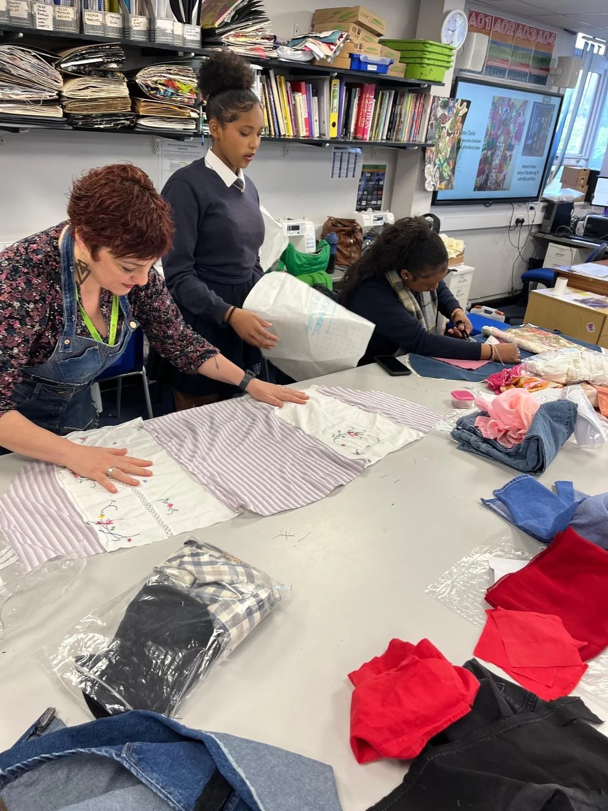 At Meadow Park, students crafted dream catchers, weavings, and minimal-sewing portraits with exceptional attention to detail. Blue Coat students took on aprons and upcycled portraits, focusing on embellishments that included embroidery and crochet for a beautifully detailed finish. Caludon Castle students created stunning bags with intricate trims and details, delicate aprons, and mind-blowing wall hangings. Their creativity and dedication truly shone, making this an outstanding showcase of young talent.